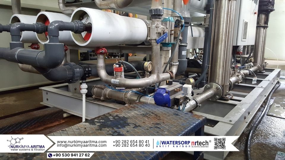 - Deniz Suyu (SWRO): 30.000−40.000 mg/L tuzluluğu, 50−70 bar basınçla arıtarak içme suyu kalitesine getirir. Yüksek enerji maliyetlerini düşürmek için Enerji Geri Kazanım Üniteleri (ERI) entegre edilir.