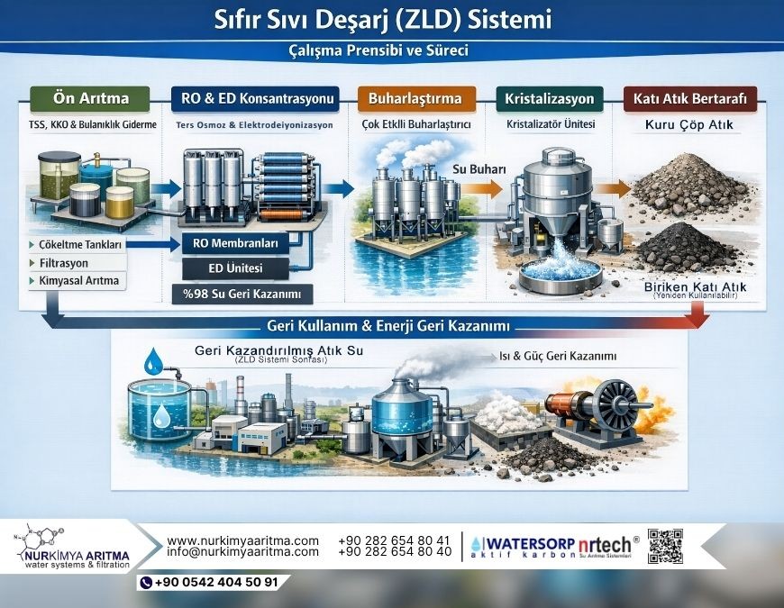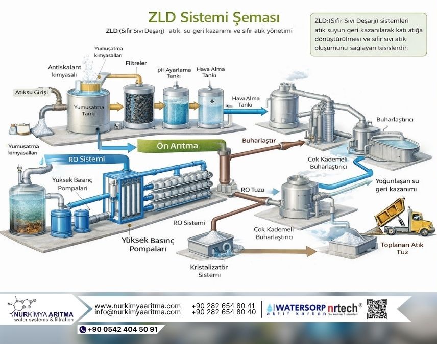 Zero Liquid Discharge (ZLD), endüstriyel atık suların ileri arıtma süreçlerinden geçirilerek tekrar kullanılabilir hale getirilmesini sağlayan bir sistemdir. Bu sistemde amaç, atık suyu tamamen ortadan kaldırmak ve sadece katı atık bırakmaktır.